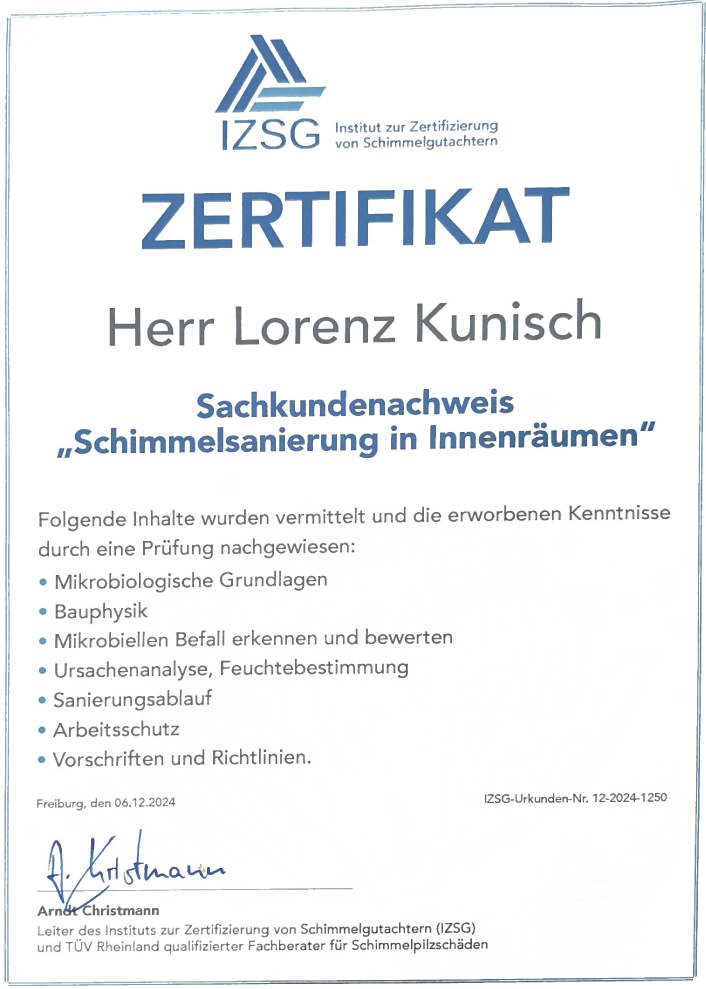 Schimmel fachgerecht entfernen und dauerhaft vorbeugen für ein gesundes Raumklima. Wir analysieren Ursachen, sanieren befallene Flächen gründlich und stellen den Untergrund wieder sicher her. Sauber, zuverlässig und nach aktuellen Fachstandards.